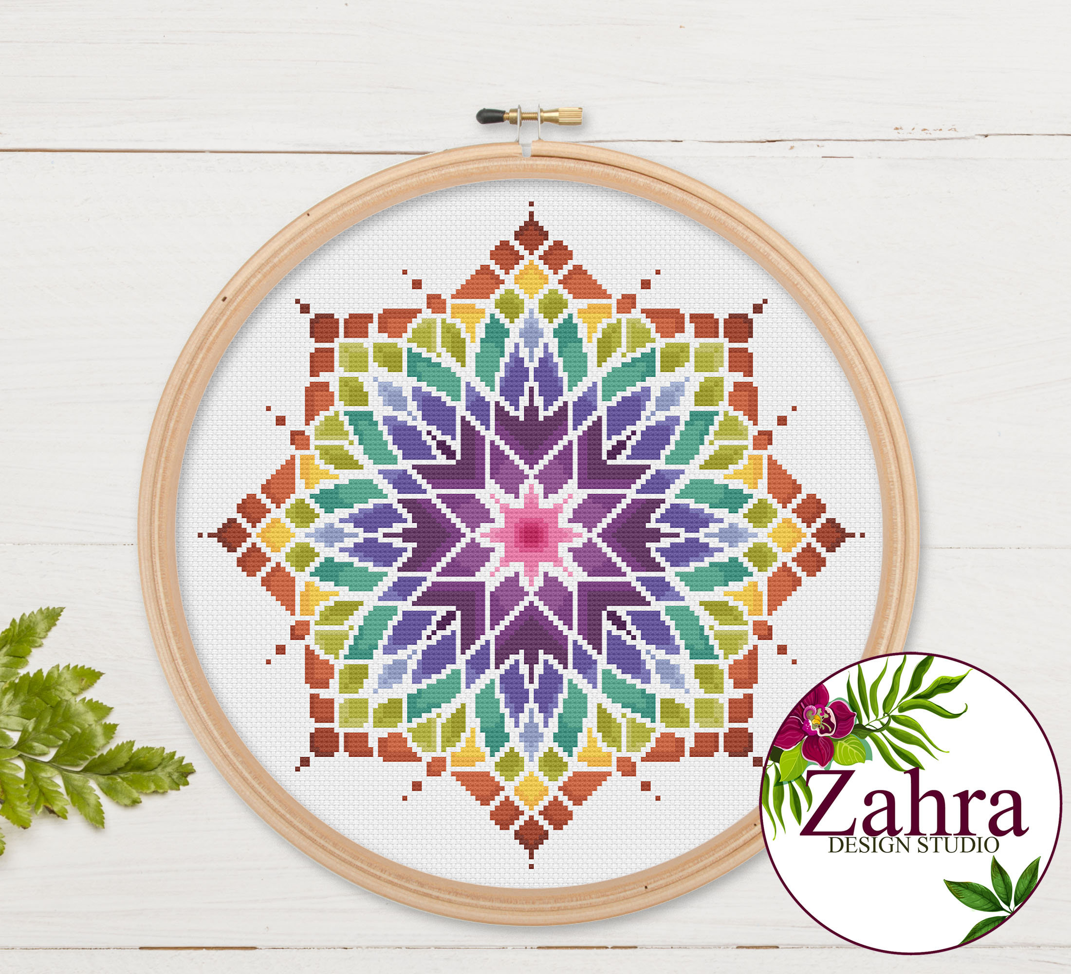 Mandala Cross Stitch Pattern Colorful Floral Mandala Cross Etsy